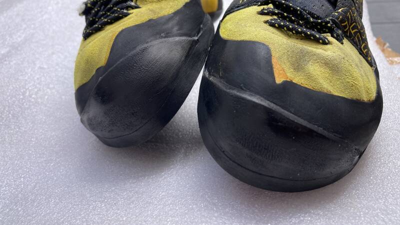 Dopo varie sperimentazioni siamo giunti alla conclusione che il metodo migliore per eseguire le punte, per quanto riguarda la resistenza meccanica, è "a copertura": uno strato di gomma incollato direttamente sopra la tomaia con un attacco fasciante che va a chiudere e stringere la punta, l'intento è quello di avvicinarsi il più possibile al comfort e alla precisione originari.